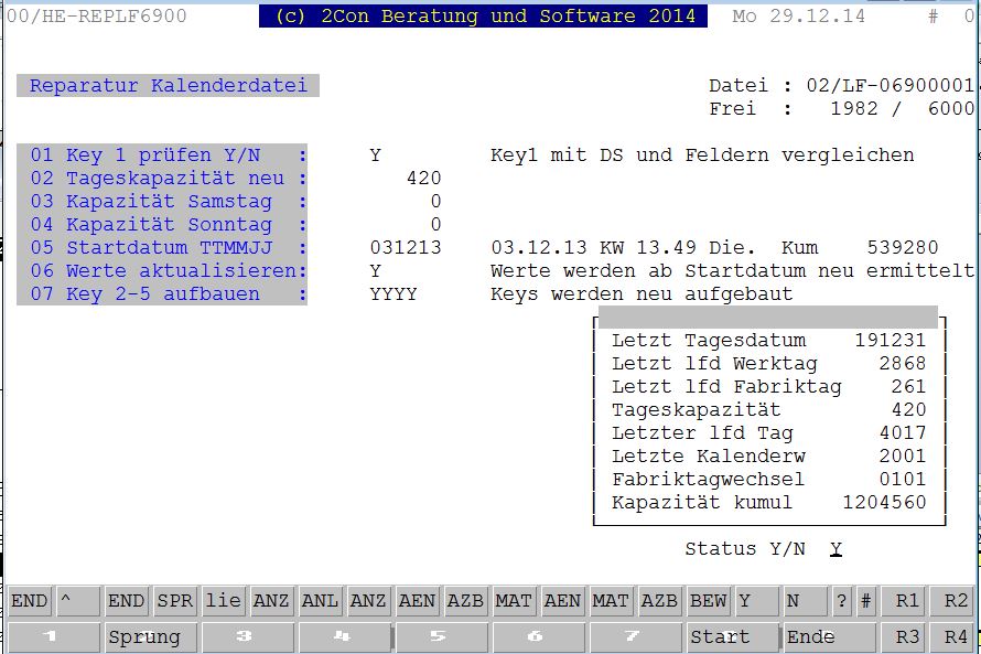 29.12.2014: Reparaturtool Kalenderdatei: Bei einigen COMET Installationen kommt es Anfang 2015 zu einer Verschiebung innerhalb der Kalenderdatei LF-06900ccc. Dabei passt die Fortschreibung der Werktage nicht mehr zum angezeigten Datum. Mit dem Reparaturprogramm HE-REPLF6900 kann die Kalenderdatei repariert und neu fortgeschrieben werden.