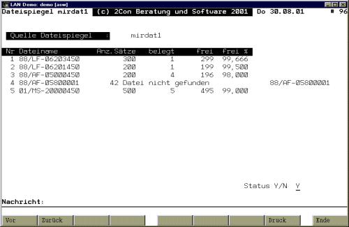 Innerhalb des COMET®-Dateisystems kommt es immer wieder zu Störungen im Betriebsablauf, da bestimmte Dateien in Ihrer Kapazität erschöpft sind und vergrössert werden müssen. Der COMET® Dateispiegel bietet einen gewissen Überblick, ist jedoch im Datei- und Leistungsumfang begrenzt.